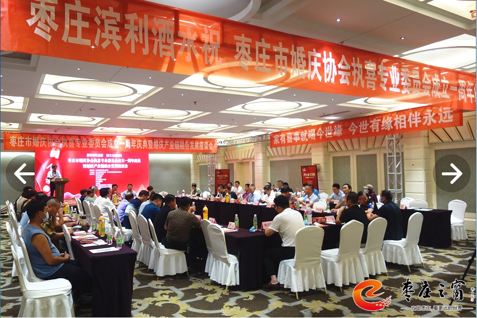 為貫徹落實上級部門提出的倡導文明、喜事新辦,移風易俗,減少陋習,新事簡辦的工作方針,建立健全婚禮執(zhí)喜的有序化,更好的構建和諧社會,為“工業(yè)強市、產(chǎn)業(yè)興市”做貢獻。7月12日下午,由棗莊市婚慶慶典協(xié)會、江蘇今世緣酒業(yè)銷售有限公司主辦的棗莊市婚慶慶典協(xié)會執(zhí)喜專業(yè)委員會成立一周年慶典暨婚慶產(chǎn)業(yè)鏈融合發(fā)展座談會在舜和棗莊大酒店舉辦,執(zhí)喜專委會成員、專委會顧問團成員、棗莊婚慶界、餐飲界、商業(yè)界代表60余人參加活動。