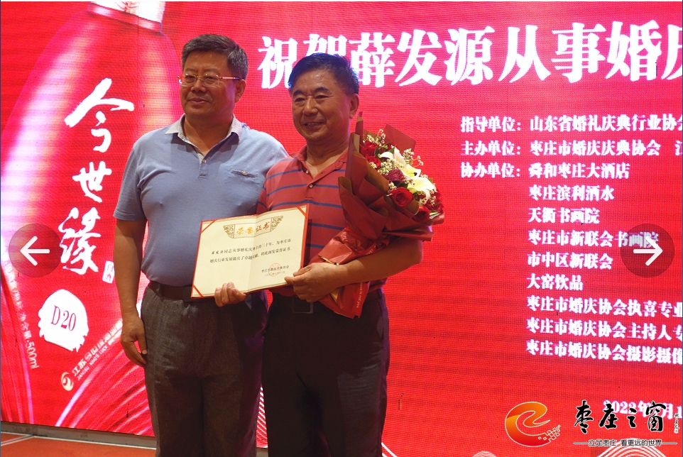 在專委會成立一周年之際,為了更好地開展工作,棗莊市婚慶慶典協(xié)會特舉辦專委會成立1周年慶典暨婚慶產(chǎn)業(yè)鏈融合發(fā)展座談會。原棗莊市兩新組織黨工委副書記、市民政局一級調研員叢方佐在座談會上致賀詞,山東省婚禮慶典行業(yè)協(xié)會、棗莊市婚慶慶典協(xié)會、江蘇今世緣酒業(yè)銷售有限公司、舜和棗莊大酒店、棗莊濱利酒水、天衢書畫院、棗莊市新聯(lián)會書畫院、市中區(qū)新聯(lián)會、大窯飲品、棗莊市婚慶協(xié)會執(zhí)喜專業(yè)委員會、棗莊市婚慶協(xié)會主持人專業(yè)委員會、棗莊市婚慶協(xié)會攝影攝像專業(yè)委員會等代表在座談會發(fā)言,對棗莊婚慶行業(yè)與相關婚慶產(chǎn)業(yè)的融合發(fā)展提出建議和期望。周年慶還給從事婚慶行業(yè)三十周年的薛發(fā)源同志頒發(fā)卓越成就獎,同時,專委會專家顧問團新聘任7位同志為執(zhí)喜專業(yè)委員會顧問,進一步提高了專委會的專業(yè)水平,在今后為廣大群眾提供更好的專業(yè)化服務。(楊仁成 攝影)