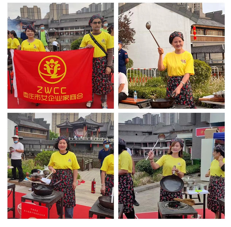 此次盛會(huì),棗莊市女企業(yè)家商會(huì)受邀并組織20余名會(huì)員參加。在商會(huì)會(huì)長(zhǎng)盧春穎的帶領(lǐng)下,商會(huì)會(huì)員企業(yè)山東化繁生物科技有限公司、山東鼎養(yǎng)食品有限公司、棗莊暹羅印象泰國(guó)直營(yíng)店三家企業(yè)現(xiàn)場(chǎng)布置展位參展,充分展示了會(huì)員企業(yè)優(yōu)秀的企業(yè)文化和豐富的特色產(chǎn)品。同時(shí)以盧會(huì)長(zhǎng)為代表的還參加了百姓炒雞表演,展現(xiàn)了精湛的廚藝,商會(huì)副會(huì)長(zhǎng)張?jiān)聠蹋ㄉ介茫┦艽髸?huì)邀請(qǐng)參加開(kāi)幕式并激情演唱自己的原唱歌曲。