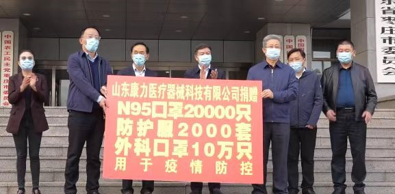 10月27日,山東康力醫(yī)療器械科技有限公司在棗莊市政協(xié)機關(guān)舉行防疫物資捐贈活動。