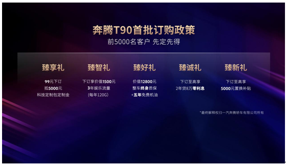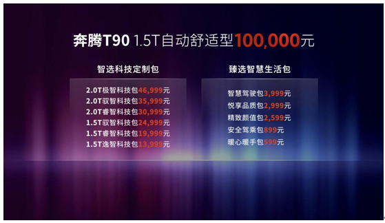 一汽奔騰T90上市推出六大智選科技定制包和五大臻選智慧生活包。