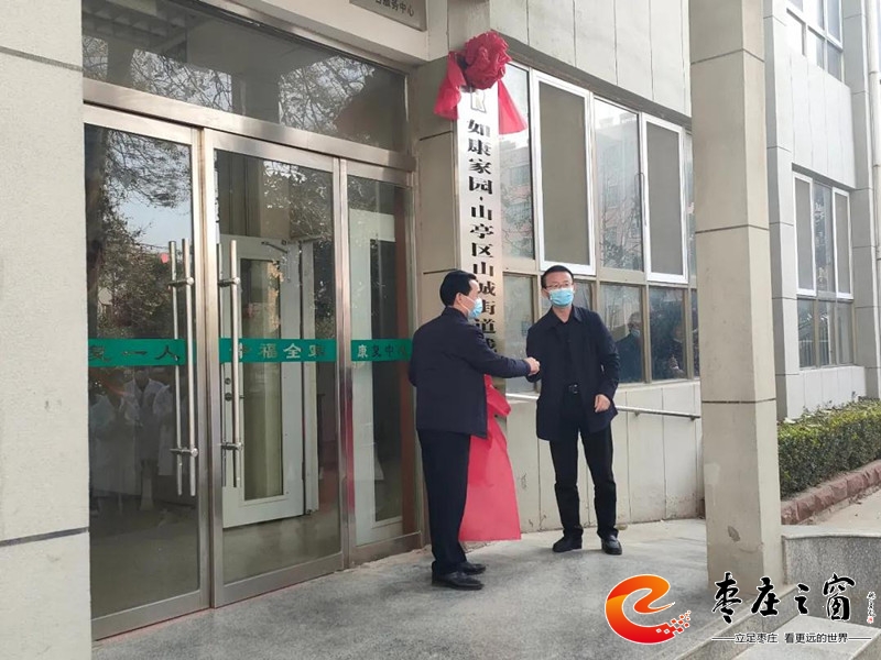 山亭區(qū)殘聯(lián)理事長(zhǎng)徐金發(fā)和山城街道黨工委副書記、辦事處主任賈繼勇共同為山城街道如康家園揭牌。